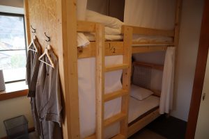 ベッドはそれぞれカーテンで区切ることもでき、コンセントもありました。