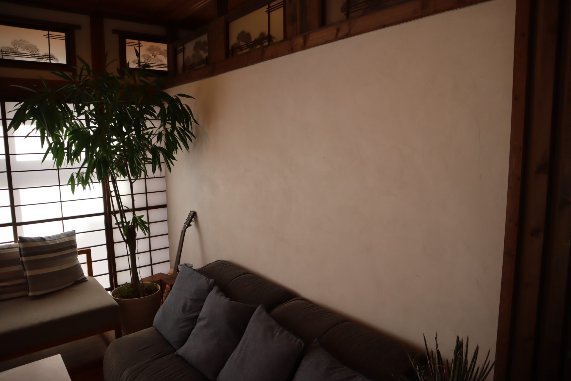 オーナーの石森さんのこだわりは、ご自身で塗った漆喰の壁だそうです。