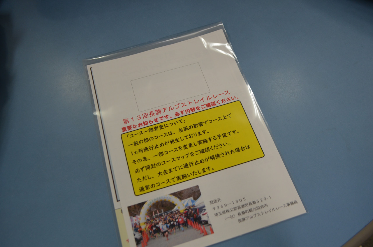 ・ゼッケン番号通知書・大会当日の内容・コースマップ・注意事項などを記載した書類を