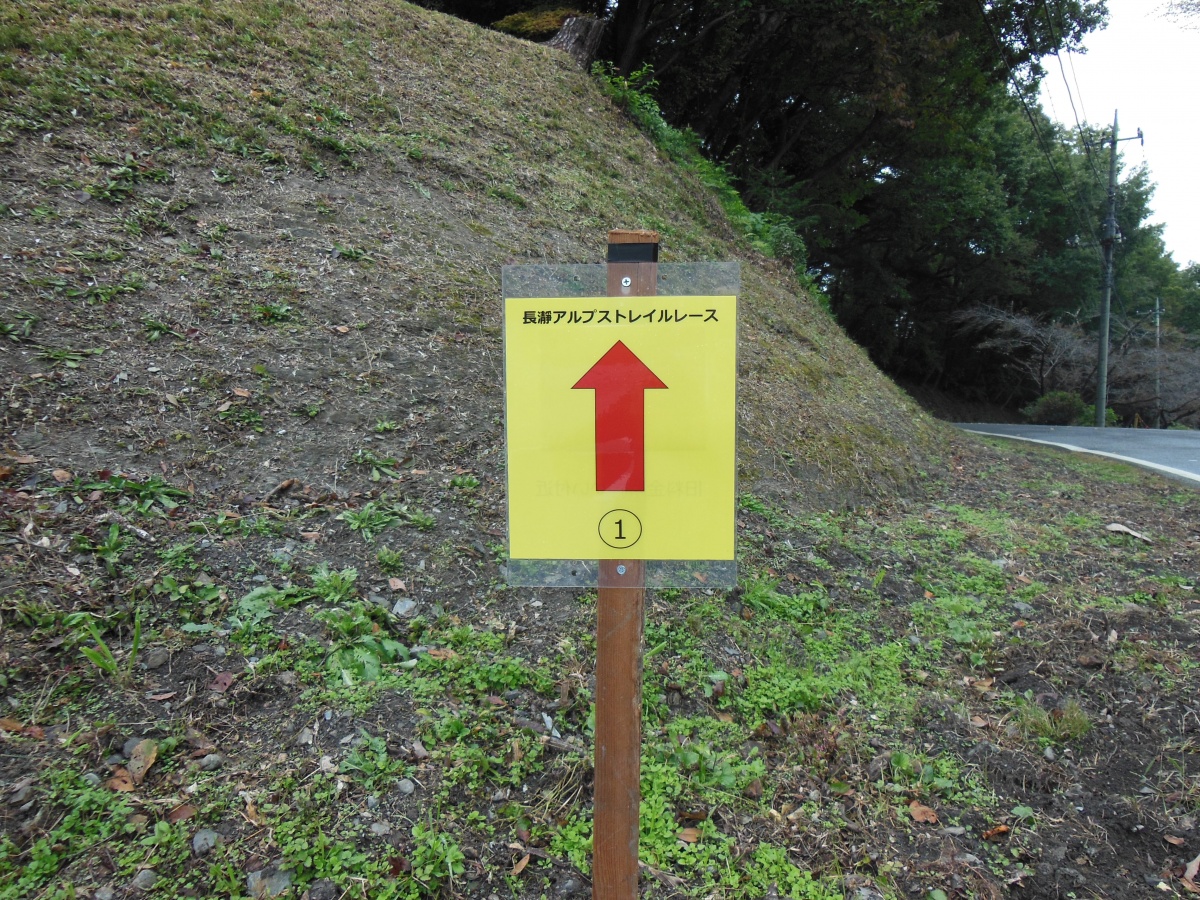 試走をされる方は、スタート(宝登山大駐車場入り口ゲート・写真➀)から、コース誘導看板(写真➁)の、番号に沿って試走をしてください。