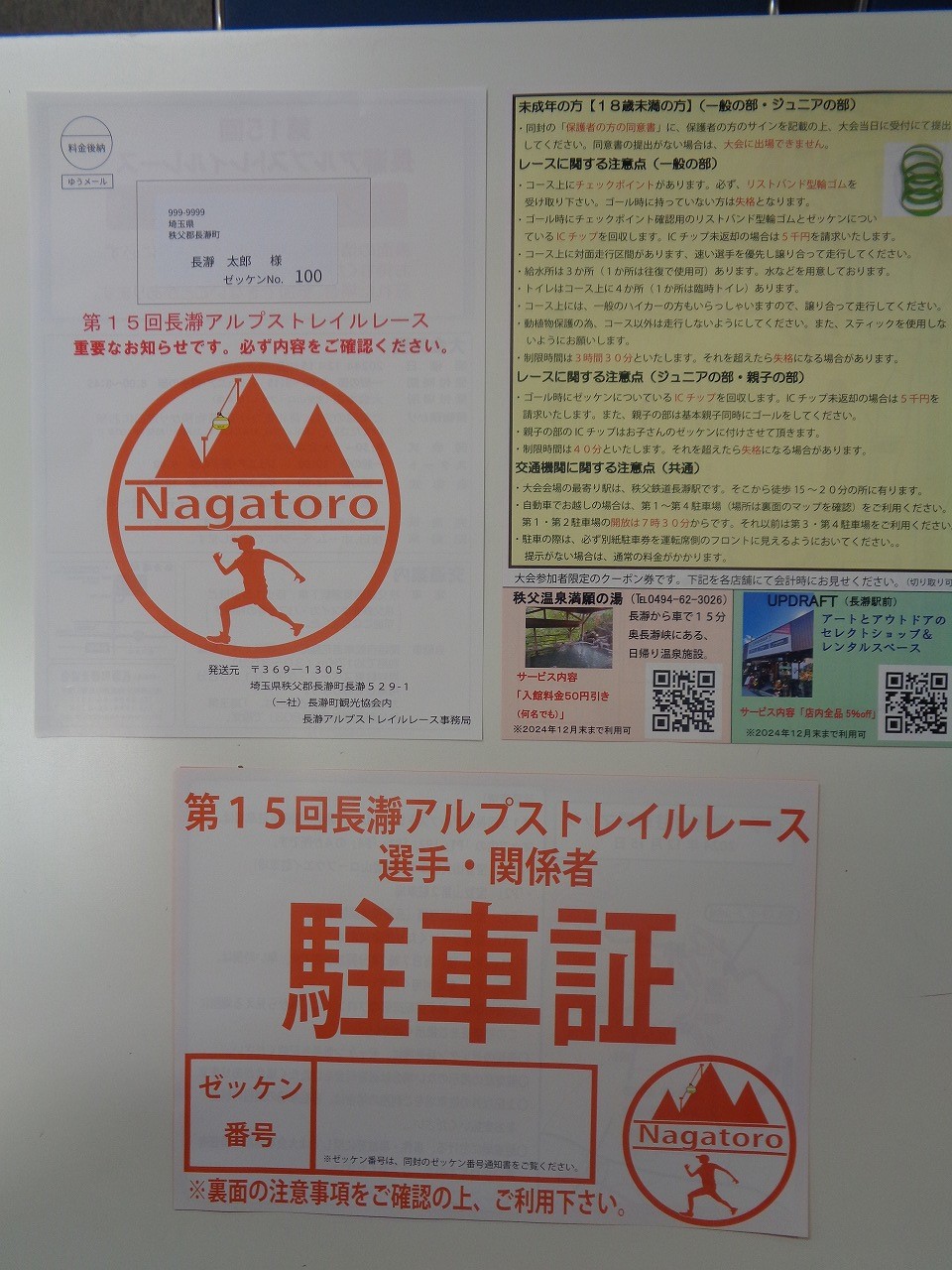 送付物 ①ナンバー(ゼッケンNo)通知書
