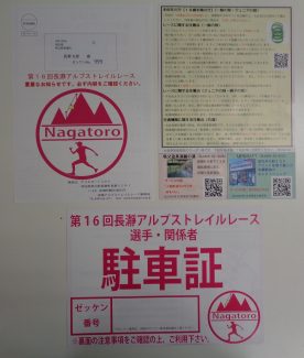 送付物:ナンバーカード引換証・大会注意事項・駐車証(利用の申し出のあった方)