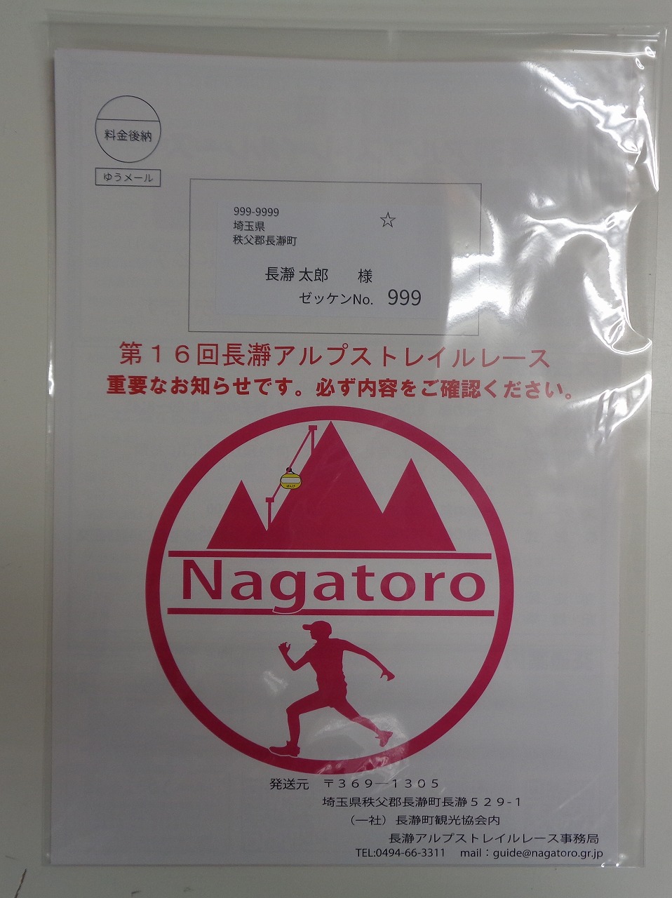 ゼッケン番号通知書」「大会案内」等をお送りいたします。